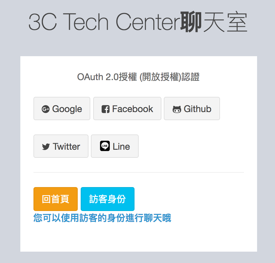 3C Tech Center也支援,了多種OAuth驗證方式,提供使用者多種的選擇。