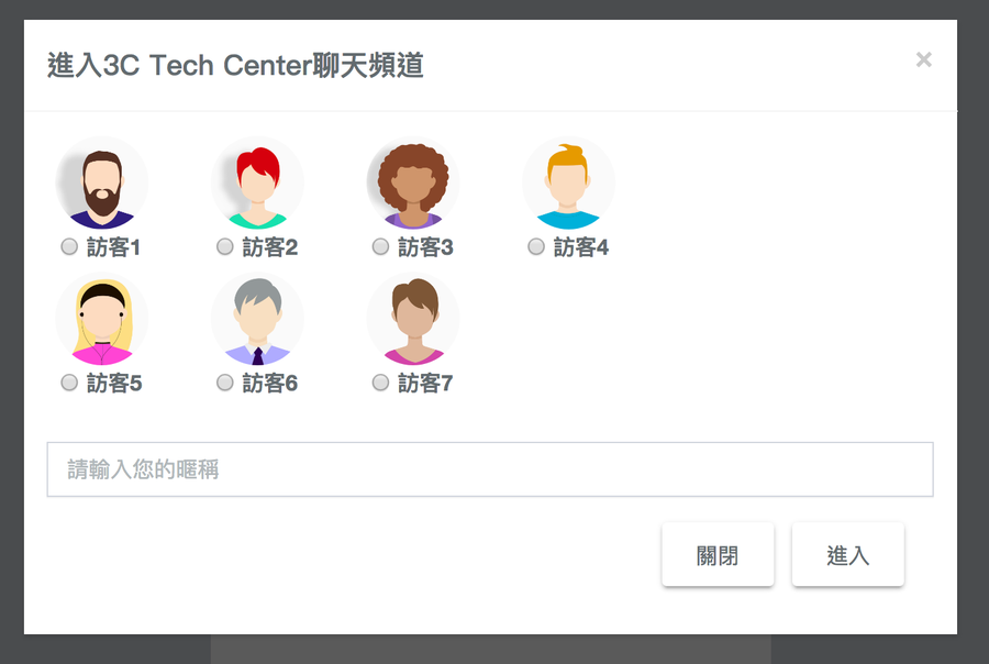 如是我們使用,訪客身份即可進行聊天,完全不需要登入。